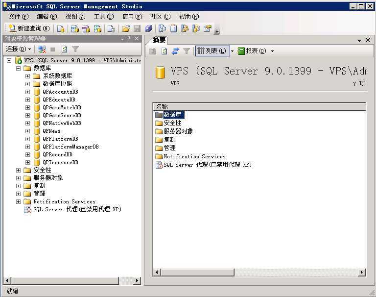 架设棋牌不可缺少的一款数据库软件SQL Server 2005 是一个全面的数据库平台,使用集成的商业智能 (BI) 工具提供了企业级的数据管理。SQL Server 2005 数据库引擎为关系型数据和结构化数据提供了更安全可靠的存储功能,使您可以构建和管理用于业务的高可用和高性能的数据应用程序。SQL Server 2005界面: